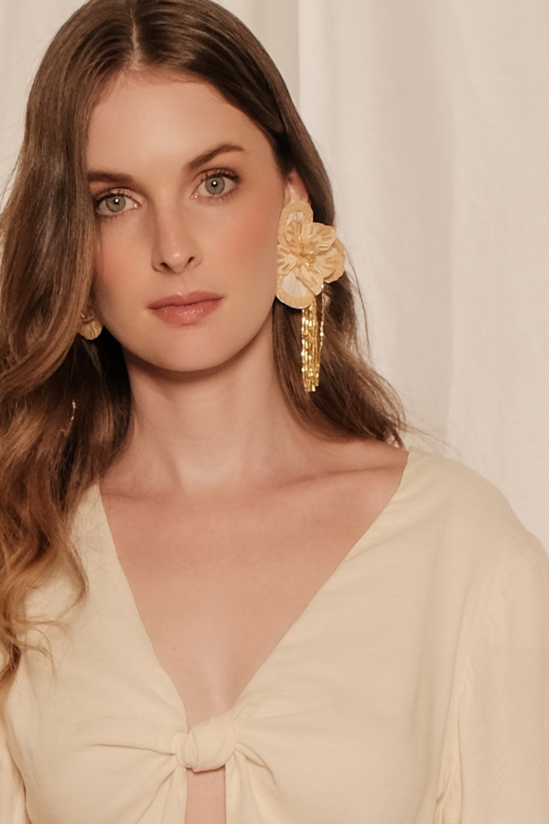 Eleva tu estilo con nuestros aretes hechos a mano por artesanos expertos, estos todos los helajes son de bronce con baño en oro de 24k y esmalte hipoalergénico, son la opción perfecta para añadir originalidad a tu look. Versátiles y llamativos, agregan un toque único a cualquier atuendo.