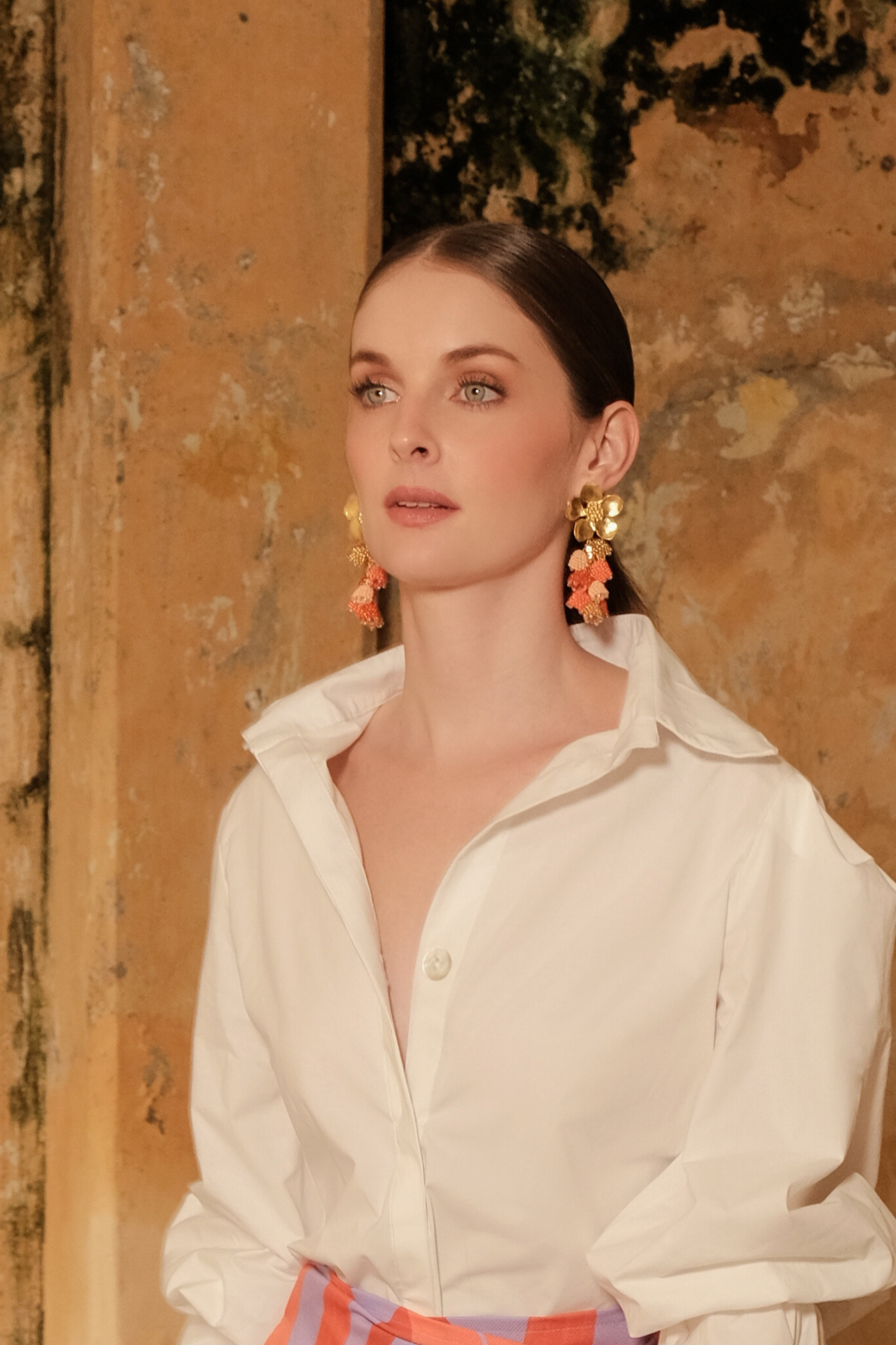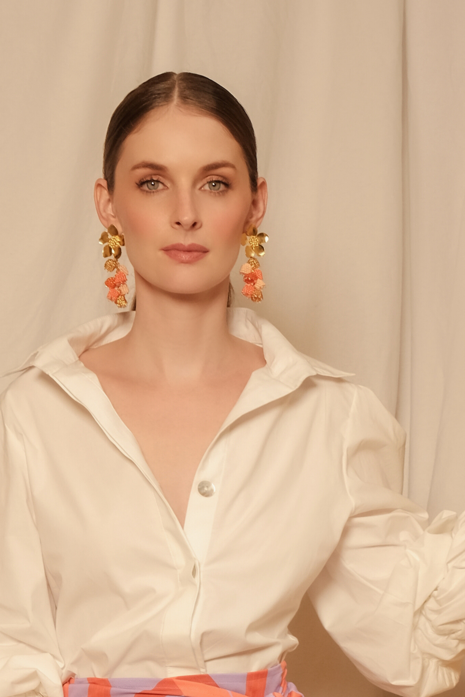 Eleva tu estilo con nuestros aretes hechos a mano por artesanos expertos, estos todos los helajes son de bronce con baño en oro de 24k y esmalte hipoalergénico, son la opción perfecta para añadir originalidad a tu look. Versátiles y llamativos, agregan un toque único a cualquier atuendo.